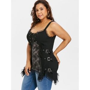 HOT Plus Size Ruffle Lace Up Buckled Tank Top