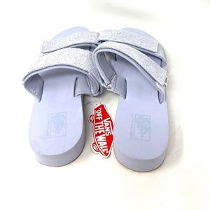 Vans Leather Cayucas Mega Platform Slides. Built on a platform base, the Womens Leather Cayucas Slide Mega Platform features premium leather and synthetic straps with details and hook-and-loop adjustability, soft rubber-backed stretch textile linings, and water-based inks and glues. It also includes ULTRACUSH™ footbeds for all-day comfort, and durable rubber outsoles with sawtooth tread. Imported.