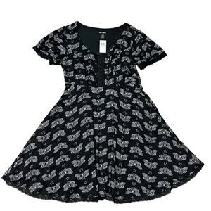 HOT TOPIC Death Moth Black Fit Flare Mini Dress Witchy Whimsygoth Fairy Sz XL