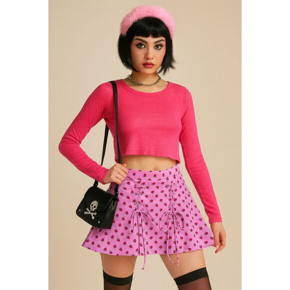 HOT TOPIC Pink Strawberry Lace Up Mini Roller Skirt