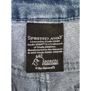 The HOT TOPIC Studio Ghibli Spirited Away No-Face Mom Shorts in size 3 are a stylish and comfortable choice for women. Made from cotton denim in a dark wash, these regular fit jeans feature a classic 5-pocket design. The blue color and artistic theme make them perfect for the summer, fall, and spring seasons. With a waist size of 25 inches and being machine washable, these shorts offer both convenience and fashion.