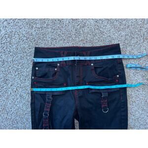 HOT TOPIC Tripp NYC Womans Jeans/Pants, Black with Red stitching; Flare, Y2K