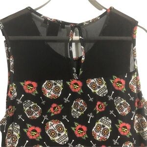 HOT TOPIC candy skull, crosses, and roses dress large