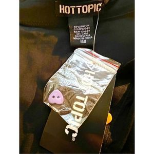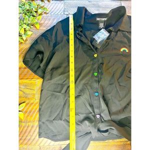 HOT Topic Tie Front Top Black Sleeveless Rainbow Patch Rainbow Buttons Front MD