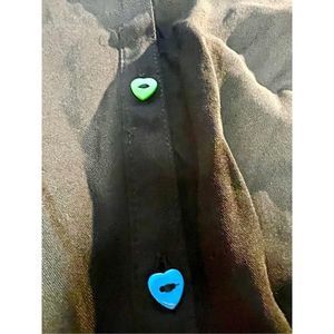 Condition is new with tags. No holes rips or stains. Buttons are heart shaped and rainbow colored. Had a tie in the front. See photos for measurements.