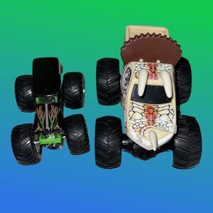 HOT WHEELS MONSTER JAM JURASSIC ATTACK DINO 4X4 & GRAVE DIGGER DIE CAST MONSTER TRUCKS