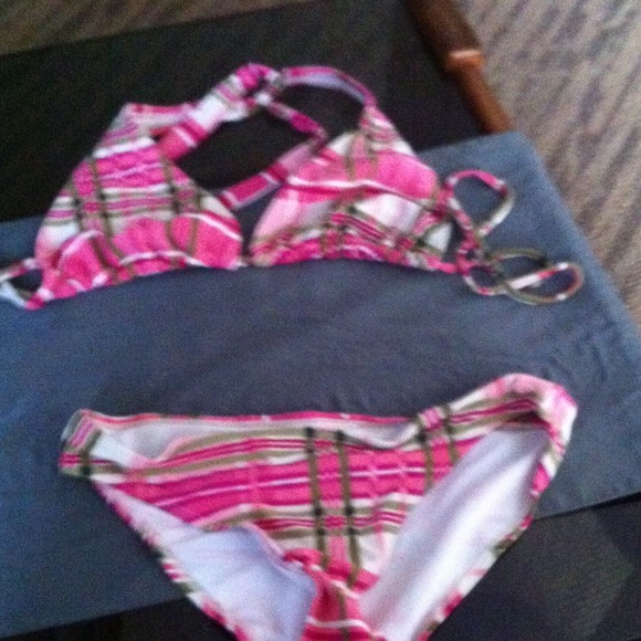 YOUR GONNA LOOK GREAt in this plaid pink green and white bikini☀️ 👙☀️ 😎