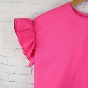 HOT PINK CREW NECK RUFFLE SLEEVE CROPPED TOP SIZE 8 JUNIORS