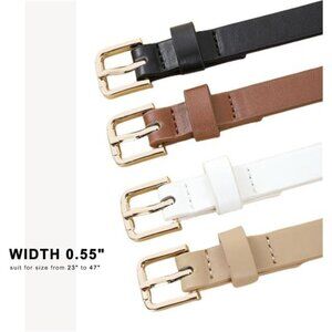 0.55 inch wide microfiber leather thin belt, suit for women pants size from 23 to 47 inch; 4 Pack waist belt combination of black brown white beige, one purchase to meet your different matching needs