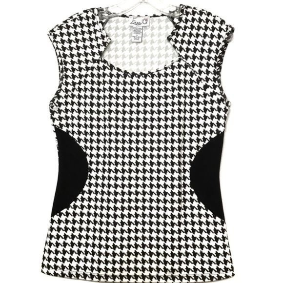 HOUNDS TOOTH CORAZON NECKLINE SLEEVES TOP MEDIUM