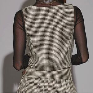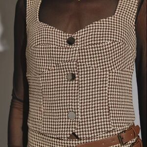 HOUNDSTOOTH BROWN THREE BUTTON VEST TOP