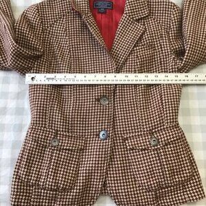Vintage American Eagle Wool Houndstooth Blazer Red Lining Tailored Medium