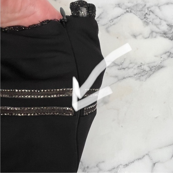 This is such a great quality dress and actually very comfortable to wear. Overall in perfect condition but I did notice the corner of the glittery band has separated from the fabric just a little bit-hardly noticeable, but I did want to mention it-please see last photo