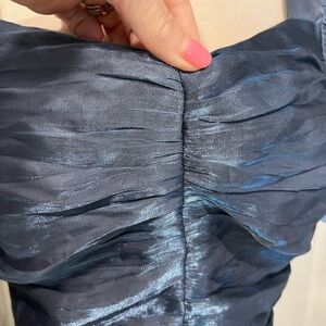 HOUSE OF BLOOM cropped ruched top with puffy sleeves in dusty blue with shimmer