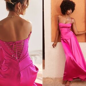 HOUSE OF CB ANABELLA CORSET LACE UP MAXI DRESS IN FUCHSIA SIZE XS REGULAR CUP