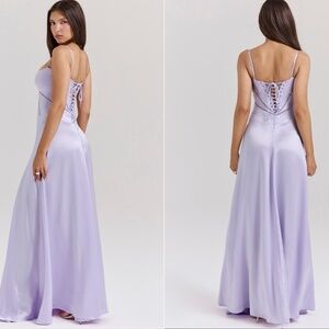 HOUSE OF CB ANABELLA ORCHID LACE UP CORSET MAXI DRESS IN ORCHID SIZE S REG CUP