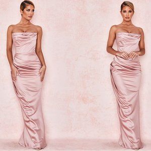 HOUSE OF CB 'Adrienne' Blush Satin Strapless Gown NWOT