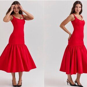 HOUSE OF CB 'Amore' Scarlet Dropped Waist Midi Dress NWOT