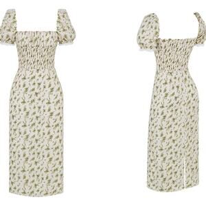 Think Italian riviera glam with 'Bellucci'. Floral Garden prints, strategic sexy shirring and vintage vibes come together in this perfect Summer offering. Team this crisp cotton creation with a dainty 'Lola' heels for Summers to remember. Bellucci is fully lined for comfort with a zip to the back for easy on.