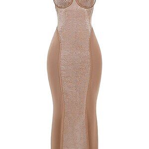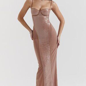 HOUSE OF CB 'Bonita' Cafe Au Lait Sequin Maxi Dress NWOT