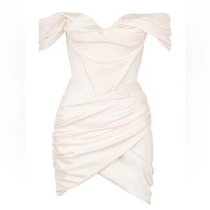 HOUSE OF CB Coraline Corset Ivory Satin Off Shoulder Medium US 6 / 8