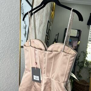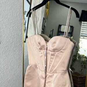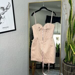 HOUSE OF CB 'Cordelia' Beige Corset Mini Dress with Crystal Straps NWT