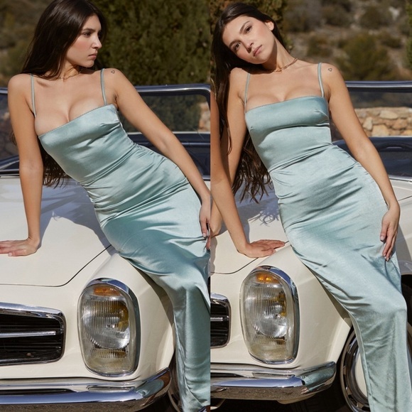 HOUSE OF CB 'Costanza' Light Jade Maxi Dress blue NWOT size L