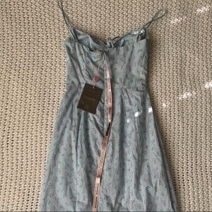 It's cut from a lightweight cotton mix that hangs beautifully and has a delicate baby blue floral pattern. Dress still has tags and security ribbon attached (NWT)
