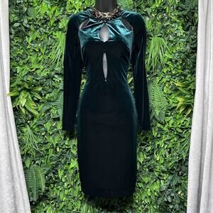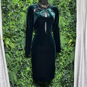 HOUSE OF CB Dress Women Small Green Denara Velvet Velour Midi Cut Outs 2740