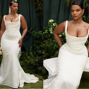 HOUSE OF CB 'Emilie' Off White Satin Mermaid Bridal Gown NWOT