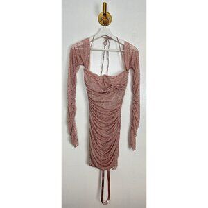 HOUSE OF CB Estella Crystallised Mini Dress in Soft Pink Size Medium