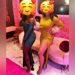 HOUSE OF CB 'Gina' Chartreuse Crystallised Maxi Dress /Size L-US 8-10