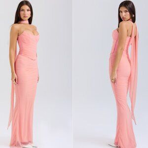 HOUSE OF CB 'Hallie' Peach Strapless Corset Maxi Skirt Set With Neck Scarf NWOT