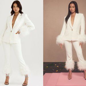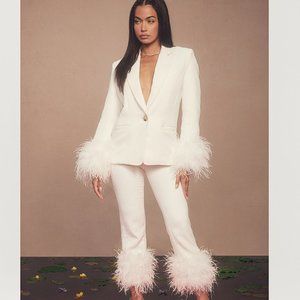 The padded shoulders are added for structure and we especially love the dramatic yet elegant feather trim cuffs for a glamorous finish. It is fully lined for smooth layering. Wear yours with the matching 'Fae' trousers available in my other listing