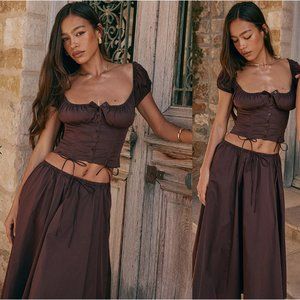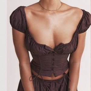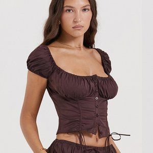 HOUSE OF CB 'Kitty' Rich Brown Gathered Top NWOT