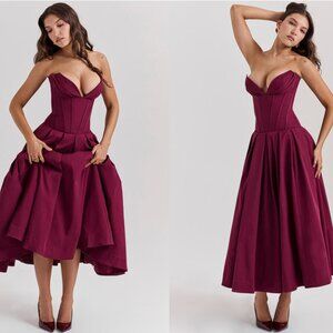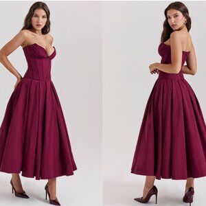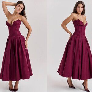 HOUSE OF CB 'Lady' Wine Strapless Midi Dress NWOT