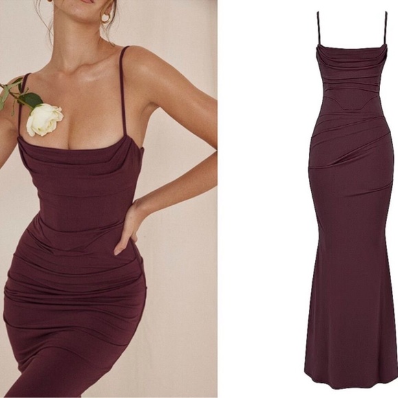 HOUSE OF CB Lani Corset Maxi Dress – XS (A/C Cup) – Merlot