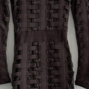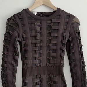 The figure cinching bodycon design has been a signature of our brand since the very beginning. Designed to contour your silhouette, it's cut from our incredibly stretchy and sculpting chocolate brown bandage fabric with a matched stretch power mesh in a flattering criss-cross pattern.