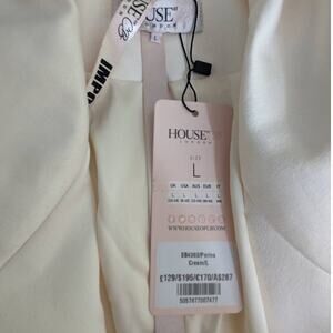 HOUSE OF CB London Perina Cream Satin Blazer Mini Dress Large Ivory NWT Flaws