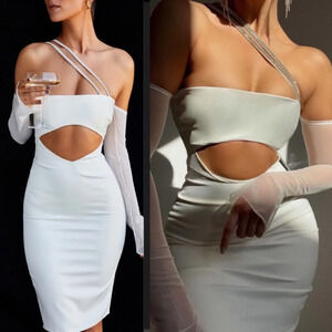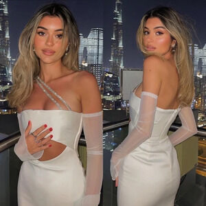 HOUSE OF CB 'Loulou' Ivory Satin Cutout Midi Dress rhinestone NWOT size Large
