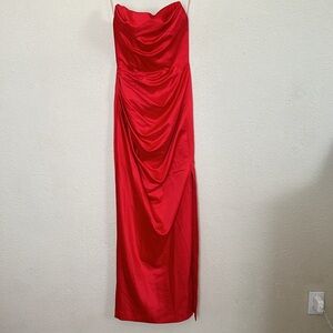 HOUSE OF CB M A-C Adrienne' Scarlet Satin Strapless red Gown size M