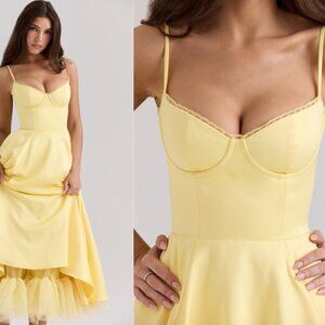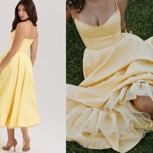 HOUSE OF CB 'Mademoiselle' Sunshine Yellow Satin Tulle Midi NWOT
