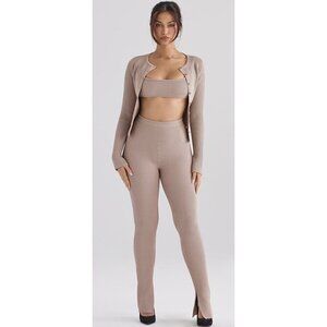 HOUSE OF CB Mitzi Rib Leggings in Taupe Size Small