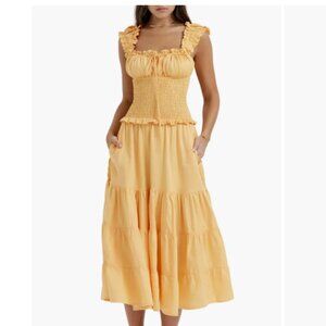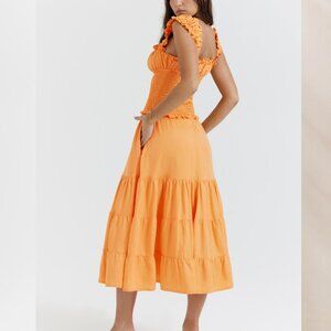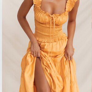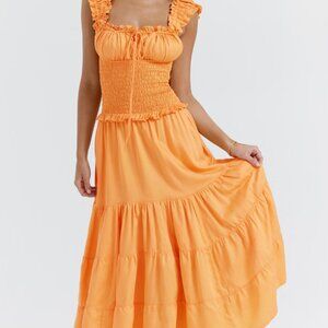 HOUSE OF CB Phedra Ruffle Smocked Bodice Sundress Large, WARM APRICOT
