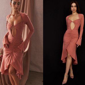 HOUSE OF CB 'Reine' Rose Real Silk Ruffle Midi Dress NWOT