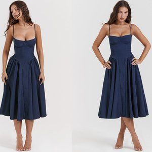 HOUSE OF CB 'Samaria' French Navy Corset Sundress NWOT