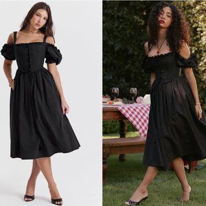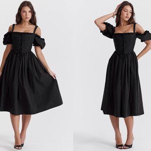 HOUSE OF CB 'Silvana' Black Puff Sleeve Midi Sundress NWOT