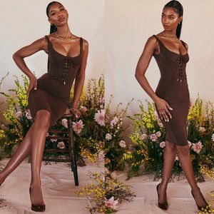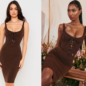 HOUSE OF CB 'Simona' Chocolate Lace Up Corset Midi Dress NWOT