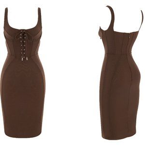 HOUSE OF CB 'Simona' Chocolate Lace Up Corset Midi Dress NWOT