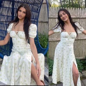 HOUSE OF CB 'Tallulah' Ivory Floral Puff Sleeve Midi Dress NWOT Size XL